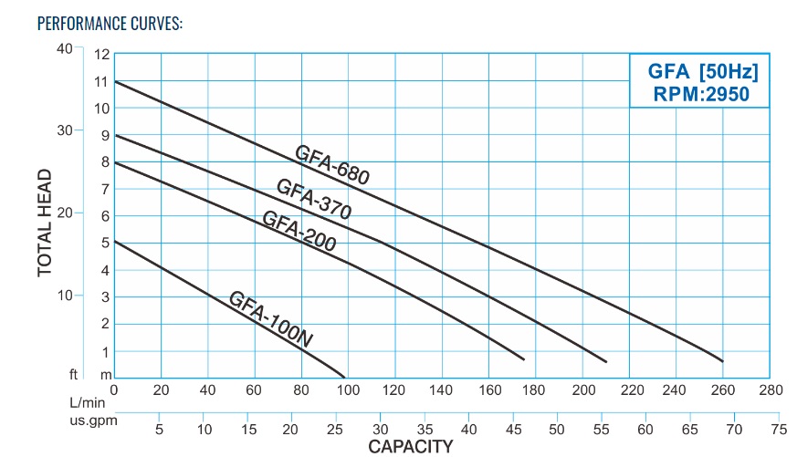 Pompa Seri GFA cocok digunakan untuk pompa air jernih yang tidak mengandung partikel abrasif.