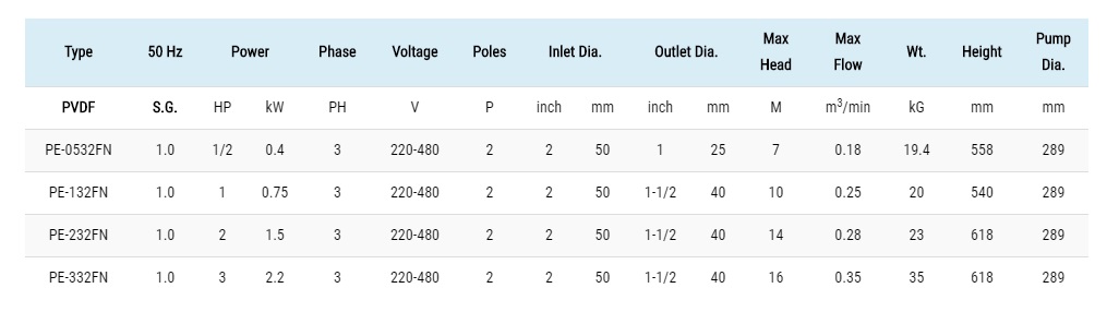 The special design of the PE-F series pvdf sealless chemical vertical pump is specialized for transfer and circulation of various liquids from containers, sumps and tanks.